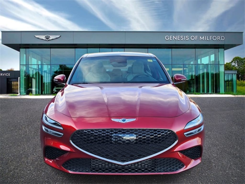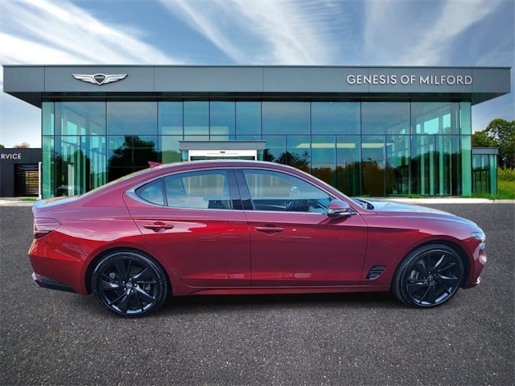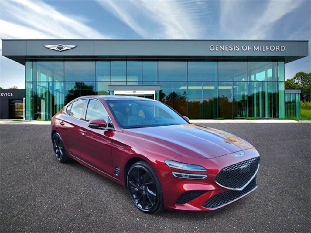 1 OWNER, LOCAL TRADE, CLEAN CARFAX, GENESIS CERTIFIED PRE-OWNED, 4-Way Power Lumbar Front Passenger Seat, Acoustic Front Door Glass, Alloy Pedals, Dark Chrome Grille & Daylight Opening Trim, Forward & Reverse Parking Distance Warning, Front Passenger Seat Walk-In Device, Integrated Memory System (IMS), Leather Seating Surfaces, Option Group 02, Power Folding ECM Outside Mirrors, Power Telescoping Steering Wheel, Radio: AM/FM/SiriusXM/HD Lexicon Prem Audio System, Rain-Sensing Wipers, Sport Aluminum Trim, Sport Prestige Package, Ventilated Front Seats, Wheels: 19" x 8.0J Fr & 19" x 8.5J Rr Sport Alloy, Wide Sunroof, Wireless Device Charging. CARFAX One-Owner. Clean CARFAX. Certified. Havana Red 2023 Genesis G70 2.0T Sport Prestige AWD 8-Speed Automatic with SHIFTRONIC I4