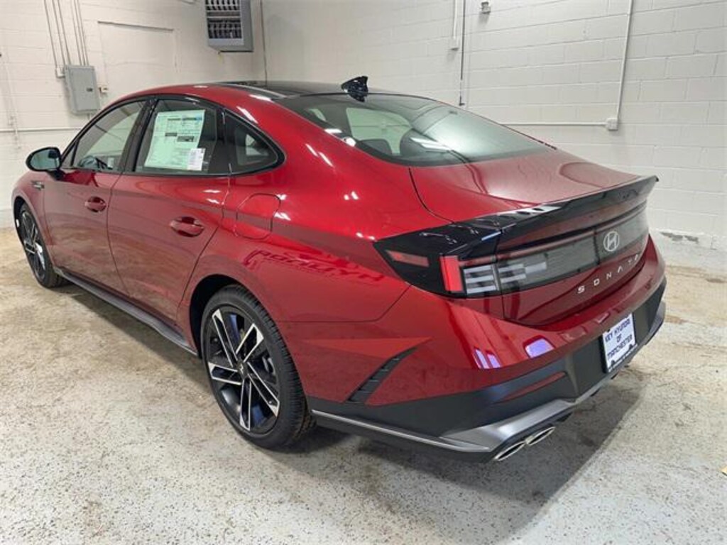 Ultimate red 2025 Hyundai Sonata N Line FWD 8-Speed I4 Dark Grey Premium Synthetic.