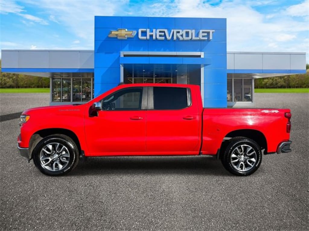 8-Speed Automatic, 4WD, Black Cloth, 10-Way Power Driver Seat w/Lumbar, 120-Volt Bed Mounted Power Outlet, 120-Volt Instrument Panel Power Outlet, Convenience Package, Dual Rear USB Ports (Charge Only), Dual-Zone Automatic Climate Control, Heated Driver & Front Outboard Passenger Seats, Heated Steering Wheel, High Capacity Suspension Package, Hitch Guidance, Keyless Open & Start, Leather Wrapped Steering Wheel, Manual Tilt/Telescoping Steering Column, Standard Suspension Package, Trailering Package, 12.3 Multicolor Reconfigurable Digital Display, 3.42 Rear Axle Ratio, 4-Wheel Disc Brakes, 40/20/40 Front Split-Bench Seat, 6 Speakers, 6-Speaker Audio System, ABS brakes, Air Conditioning, All-Star Edition, Alloy wheels, AM/FM radio: SiriusXM with 360L, Apple CarPlay/Android Auto, Auto High-beam Headlights, Auto-Locking Rear Differential, Automatic Emergency Braking, Automatic temperature control, Bluetooth® For Phone, Brake assist, Bumpers: chrome, Chevrolet Connected Access Capable, Chrome Mirror Caps, Cloth Seat Trim, Color-Keyed Carpeting Floor Covering, Compass, Deep-Tinted Glass, Delay-off headlights, Driver door bin, Driver vanity mirror, Dual front impact airbags, Dual front side impact airbags, Electric Rear-Window Defogger, Electrical Steering Column Lock, Electronic Cruise Control, Electronic Stability Control, Following Distance Indicator, Forward Collision Alert, Front anti-roll bar, Front Center Armrest w/Storage, Front dual zone A/C, Front Frame-Mounted Black Recovery Hooks, Front License Plate Kit, Front Pedestrian Braking, Front reading lights, Front wheel independent suspension, Fully automatic headlights, HD Rear Vision Camera, Heated door mirrors, Heated front seats, Heated steering wheel, Illuminated entry, IntelliBeam Automatic High Beam On/Off, Lane Keep Assist w/Lane Departure Warning, LED Cargo Area Lighting, Low tire pressure warning, Not Equipped w/Steering Column Lock, Occupant sensing airbag, OnStar & Chevrolet Connected Services Capable, Outside temperature display, Overhead airbag, Overhead console, Panic alarm, Passenger door bin, Passenger vanity mirror, Power door mirrors, Power driver seat, Power Front Windows w/Driver Express Up/Down, Power Front Windows w/Passenger Express Down, Power Rear Windows w/Express Down, Power steering, Power windows, Premium audio system: Chevrolet Infotainment 3 Premium, Radio data system, Radio: Chevrolet Infotainment 3 Premium System, Rear 60/40 Folding Bench Seat (Folds Up), Rear reading lights, Rear step bumper, Rear window defroster, Remote keyless entry, Remote Vehicle Starter System, Security system, SiriusXM w/360L, Speed control, Speed-sensing steering, Split folding rear seat, Steering Wheel Audio Controls, Steering wheel mounted audio controls, Tachometer, Telescoping steering wheel, Theft Deterrent System (Unauthorized Entry), Tilt steering wheel, Traction control, Trip computer, Variably intermittent wipers, Voltmeter, Wheels: 18 x 8.5 Bright Silver Painted Aluminum, Wheels: 20 x 9 Painted Aluminum, Wi-Fi Hot Spot Capable, Wireless Phone Projection, 8-Speed Automatic, 4WD, Black Cloth, 10-Way Power Driver Seat w/Lumbar, 120-Volt Bed Mounted Power Outlet, 120-Volt Instrument Panel Power Outlet, Convenience Package, Dual Rear USB Ports (Charge Only), Dual-Zone Automatic Climate Control, Heated Driver & Front Outboard Passenger Seats, Heated Steering Wheel, High Capacity Suspension Package, Hitch Guidance, Keyless Open & Start, Leather Wrapped Steering Wheel, Manual Tilt/Telescoping Steering Column, Standard Suspension Package, Trailering Package. Red Hot 2022 Chevrolet Silverado 1500 LT 4WD 8-Speed Automatic 2.7L Turbo