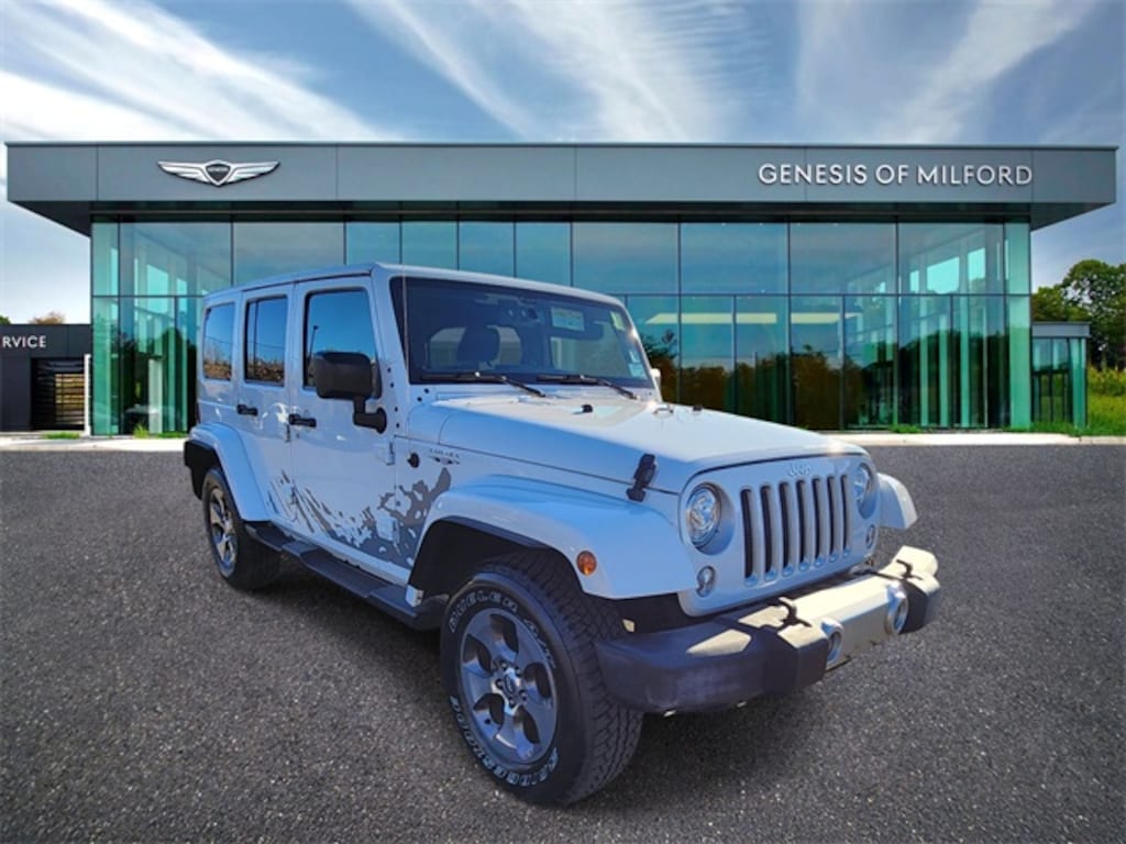 LOCAL TRADE, CLEAN CARFAX, 40GB Hard Drive w/28GB Available, 5-Year SiriusXM Travel Link Service, 6.5" Touchscreen Display, Audio Jack Input for Mobile Devices, Black 3-Piece Hard Top, Body Color 3-Piece Hard Top, Connectivity Group, Delete Sunrider Soft Top, Driver Height Adjuster Seat, Dual Top Group, Freedom Panel Storage Bag, Freedom Top Hard Top Headliner, GPS Navigation, Leather Trimmed Bucket Seats (GL) (DISC), Premium Black Sunrider Soft Top, Radio: 430 Nav, Rear Window Defroster, Rear Window Wiper/Washer, Remote USB Port, SiriusXM Travel Link, Tire Pressure Monitoring Display, Uconnect Voice Command w/Bluetooth, Vehicle Information Center. Clean CARFAX. Bright White Clearcoat 2017 Jeep Wrangler Unlimited Sahara 4X4 4WD 5-Speed Automatic 3.6L V6 24V VVT